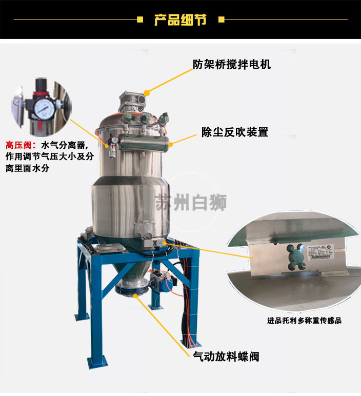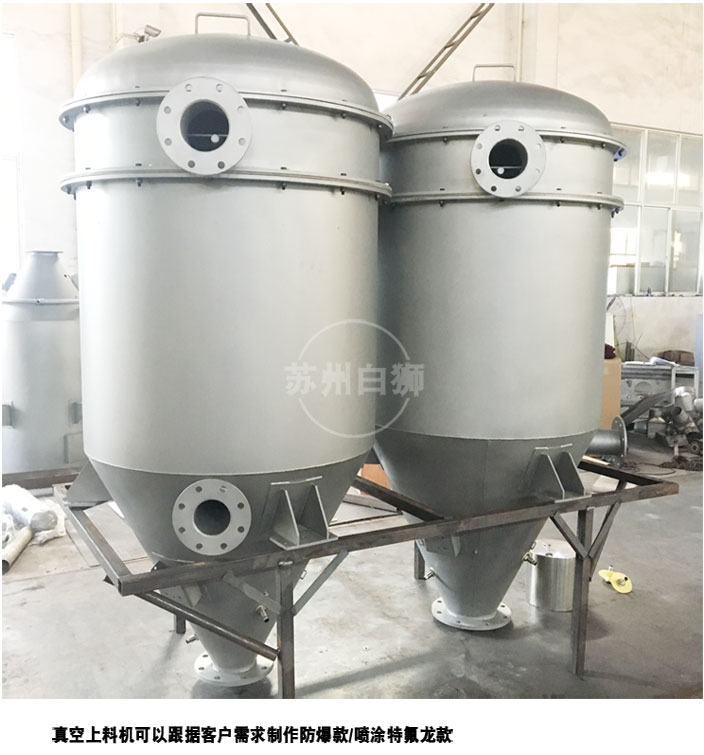 1、真空上料系統整個輸送過程為管道負壓密閉輸送,沒有粉塵泄漏,污染小,上料速度快,要求原料無粘性。該機使用高壓空氣反吹,能瞬間震落粉料,使其保持良好之效果;清理容易,無機械性死角,換料快;機體簡單,不占空間,移動方便。